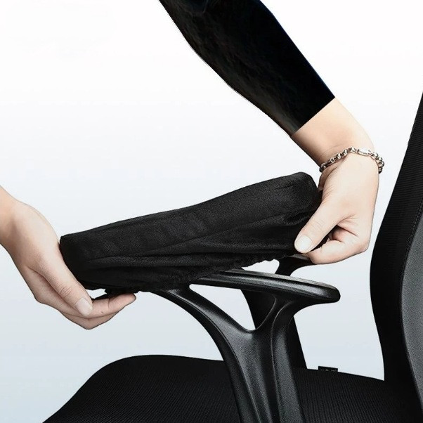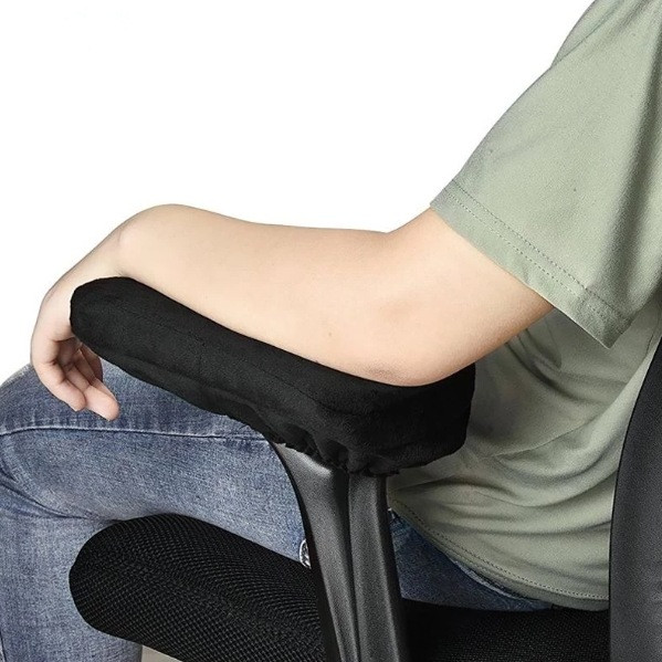 یک جفت پد نرم دسته صندلی اداری جنس روکش مخمل و پر شده با اسفنج نرم . این کاور قابل شستشو میباشد .نحوه اتصال به صورت کشی دور دسته صندلی قرار میگیرد. محافظت از آسیب به ساعد و آرنج دست ها راحتی در حین کار روی صندلی قابل استفاده برای زیر مچ دست، پشت گردن قابل استفاده به عنوان بالشت برای استراحت کوتاه.